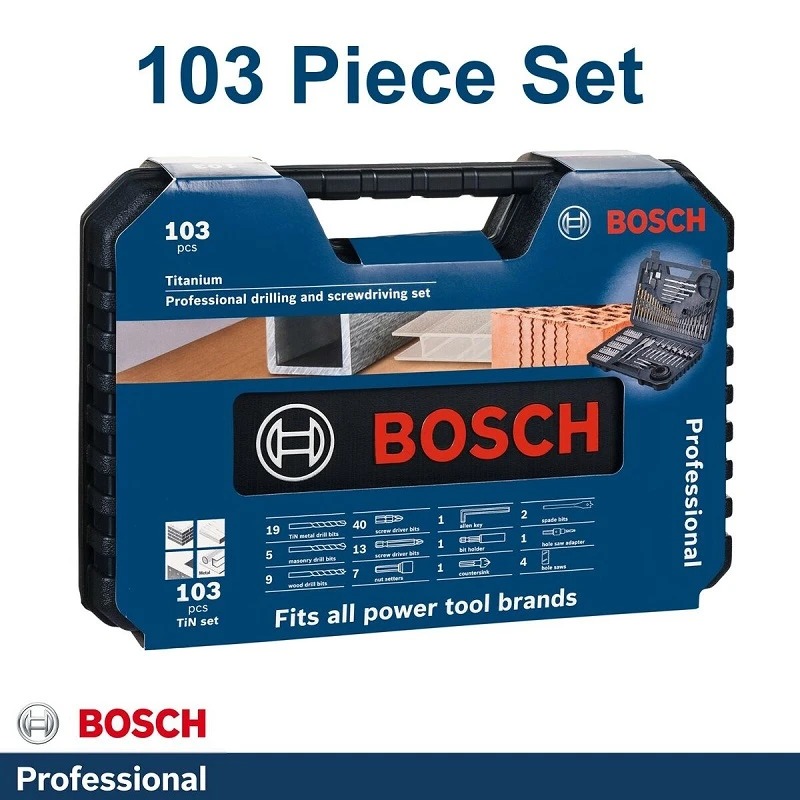 ست لوازم جانبی ترکیبی 103 عددی و مته تیتانیوم اصل Bosch Premium • Bosch Premium یک مجموعه مته و پیچ گوشتی حرفه ای تیتانیوم 103 تکه است که می تواند با درایورهای ضربه ای، سوراخ کاری و پیچ گوشتی استفاده شود. همه قطعات با مجموعه ترکیبی جذابی که همه کاربردهای رایج را پوشش میدهد، سازگار هستند و در یک کیف نمایشی قالبگیری شده سازماندهی شدهاند./ست لوازم جانبی ترکیبی 103 عددی و مته تیتانیوم اصل Bosch Premium • Bosch Premium یک مجموعه مته و پیچ گوشتی حرفه ای تیتانیوم 103 تکه است که می تواند با درایورهای ضربه ای، سوراخ کاری و پیچ گوشتی استفاده شود. همه قطعات با مجموعه ترکیبی جذابی که همه کاربردهای رایج را پوشش میدهد، سازگار هستند و در یک کیف نمایشی قالبگیری شده سازماندهی شدهاند.