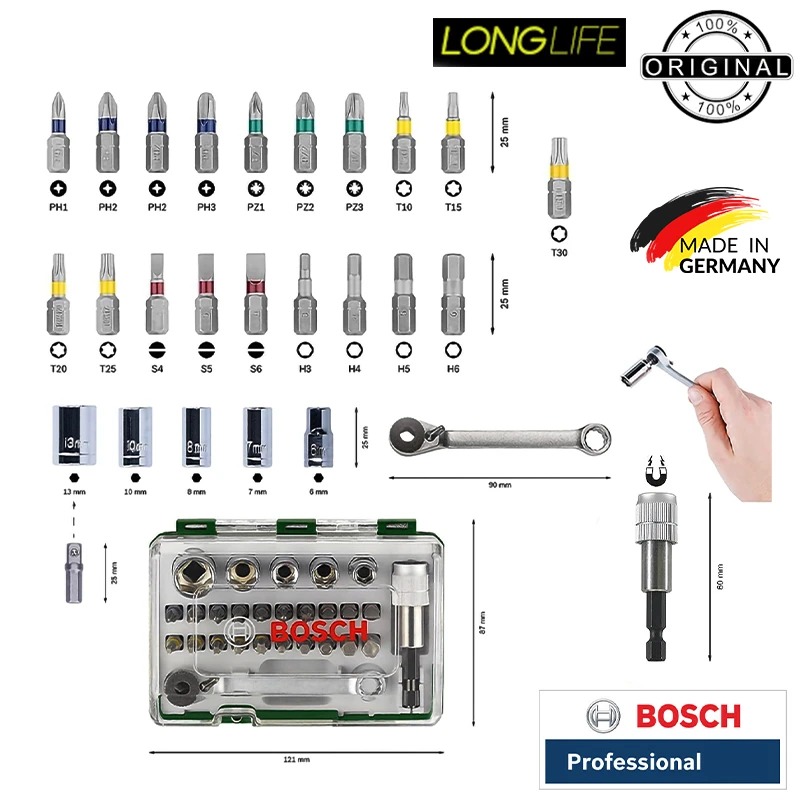 شرکت بوش (Bosch) بیتردید یکی از پرافتخارترین و قابلاعتمادترین برندهای صنعتی در جهان است. این غول تکنولوژی آلمانی که از بیش از یک قرن پیش پایهگذاری شده، امروز در قلب میلیونها خانه و کارگاه در سراسر جهان جای گرفته است. دقت مهندسی آلمانی، استحکام بینظیر محصولات، و نوآوری مداوم، بوش را به نامی بدل کرده که نه تنها «اعتماد» را معنا میکند، بلکه معیار سنجش کیفیت و دوام برای سایر برندها شده است. وقتی از ابزار صحبت میکنیم، بوش یعنی اوج کیفیت، یعنی انتخاب حرفهایها.در میان محصولات گوناگون این شرکت، ست 27 عددی پیچگوشتی و جغجغه دستی بوش با کد فنی 2607017160 ، نمونهای تمامعیار از تعهد بوش به کیفیت و کاراییست. این مجموعه کوچک اما کامل، آنقدر هوشمندانه طراحی شده که جای هیچ کمبودی در جعبه ابزار شما نمیگذارد. از اولین لمس بدنهی مقاوم و خوشدست آن تا دقت بینقص سریها در جایگیری در پیچها، تجربهای خواهید داشت که فقط ابزار بوش میتواند به شما بدهد. جغجغهی روان، نگهدارندهی آهنربایی هوشمند، و سریهای متنوع با رنگبندی کُدی برای تشخیص سریع، همگی کاری کردهاند که کار کردن با این ابزار، نه یک وظیفه، بلکه یک لذت باشد.مهم نیست که شما یک استادکار حرفهای باشید یا فقط بخواهید گاهگاهی چیزی را در خانه تعمیر کنید، این ست آنقدر کامل و بادوام است که تا سالها، همهچیز را برایتان ساده و لذتبخش خواهد کرد. بستهبندی شیک و مقاوم آن باعث میشود همیشه همهچیز مرتب و آمادهباش باشد، و هر بار که جعبه را باز میکنید، حس اعتماد به کیفیت در وجودتان تقویت شود. این همان انتخابیست که هر کسی پس از یکبار استفاده، با اطمینان به دیگران توصیهاش میکند. اگر قرار باشد فقط یک ابزار در زندگیتان داشته باشید، همین یک ست کافیست. این فقط یک خرید نیست، یک سرمایهگذاریست برای سالها آرامش، کیفیت، و اطمینان. وقتی بوش میسازَد، دیگر نیازی به فکر کردن به چیز دیگری نیست. همین امروز صاحب یکی از بهترین ابزارهای دستی جهان شوید محصولی که از نظر کیفی و فنی در دنیا بی رقیب است./ساخت آلمان / یک عدد سرپیچگوشتی PH۱ / دو عدد سرپیچگوشتی PH۲ / یک عدد سرپیچگوشتی PH۳ / یک عدد سرپیچگوشتی PZ۱ / یک عدد سرپیچگوشتی PZ۲ / یک عدد سرپیچگوشتی PZ۳ / یک عدد سرپیچگوشتی S۴ / یک عدد سرپیچگوشتی S۵ / یک عدد سرپیچگوشتی S۶ / یک عدد سرپیچگوشتی T۱۰ / یک عدد سرپیچگوشتی T۱۵ / یک عدد سرپیچگوشتی T۲۰ / یک عدد سرپیچگوشتی T۲۵ / یک عدد سرپیچگوشتی T۳۰ / یک عدد سرپیچگوشتی HEX۳ / یک عدد سرپیچگوشتی HEX۴ / یک عدد سرپیچگوشتی HEX۵ / یک عدد سرپیچگوشتی HEX۶ / یک عدد سری بکس سایز ۶ میلی متر / یک عدد سری بکس سایز ۷ میلی متر / یک عدد سری بکس سایز ۸ میلی متر / یک عدد سری بکس سایز ۱۰ میلی متر / یک عدد سری بکس سایز ۱۳ میلی متر / یک عدد مبدل بکس ۱/۴ اینچ / یک عدد آچار یک سر رینگی یک سر جغجغه / یک عدد نگهدارنده سرپیچگوشتی / پرفروش ترین مجموعه سرپیچ گوشتی دنیا در آمازون